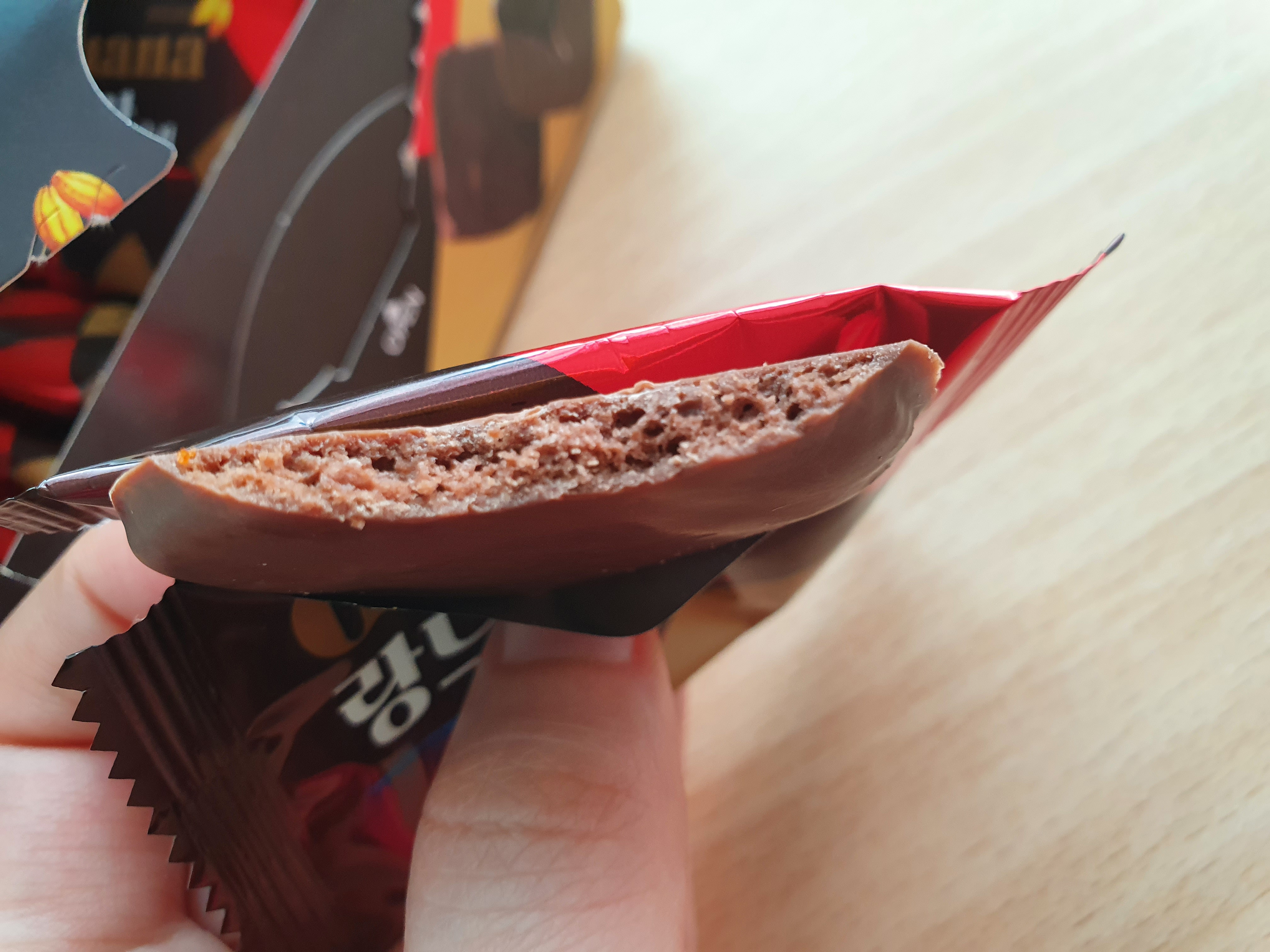 첫입 깨물때는 초콜릿같고 입에 넣고 씹다보면 부드러운 쿠키같다.
